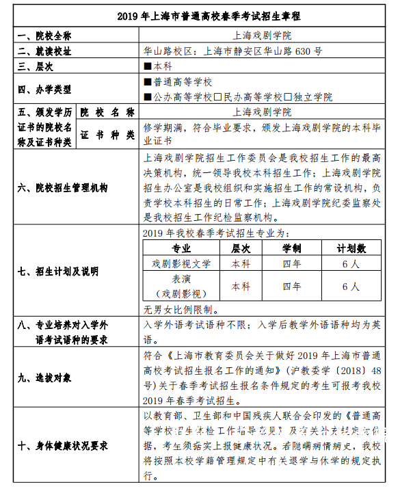今天小影来介绍一下2019上海市普通高校春季考试招生章程