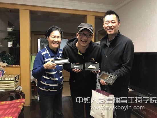 上戏电影电视学院党支部书记魏东晓代表学院将刻有学校logo的礼物送给唐奕欣,祝他早日康复。