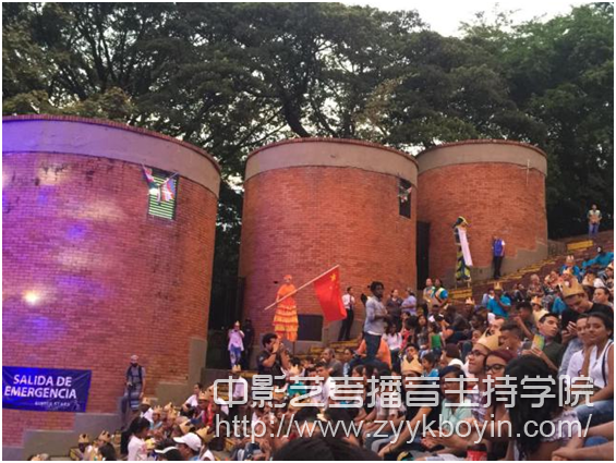 20号晚上,在卡利市中心的文化公园的露天剧场内,举行了庄重而热烈的戏剧节开幕式。也许是因为有中国代表团出席的缘故,现场出现了一面不断挥动着的五星红旗。这使上海戏剧学院巡演团的师生们倍感亲切!为祖国、为母校争得了荣誉,大家为此而倍感自豪!
