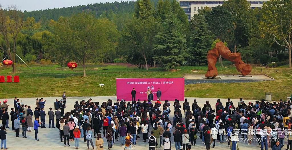 10月14日上午,隋建国大型雕塑作品《原动力》落成仪式在长清校区广场举行。山东艺术学院杰出校友、著名雕塑家、中央美术学院雕塑系主任隋建国、慧华元亨实业有限公司执行董事兼总裁罗利君、山东艺术学院院长王力克、党委副书记孔祥华出席仪式。山东艺术学院有关部门负责人、美术学院师生代表以及学校各二级学院学生代表参加落成仪式。落成仪式由党委办公室、院长办公室主任王建新主持。