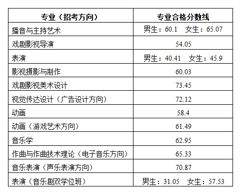 中国传媒大学2017年艺术类各专业的最终录取分数情况