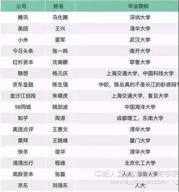 曾经乌镇饭局的一张照片,火遍整个朋友圈!中国互联网届最有权势的大佬们都来聚餐了。真相是,这是互联网创投圈“财富排行榜”大佬的聚餐。如果你以为这仅仅是一群会赚钱的大佬,那就错了,这还是一群学霸......下面是各位大佬的毕业院校: