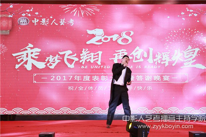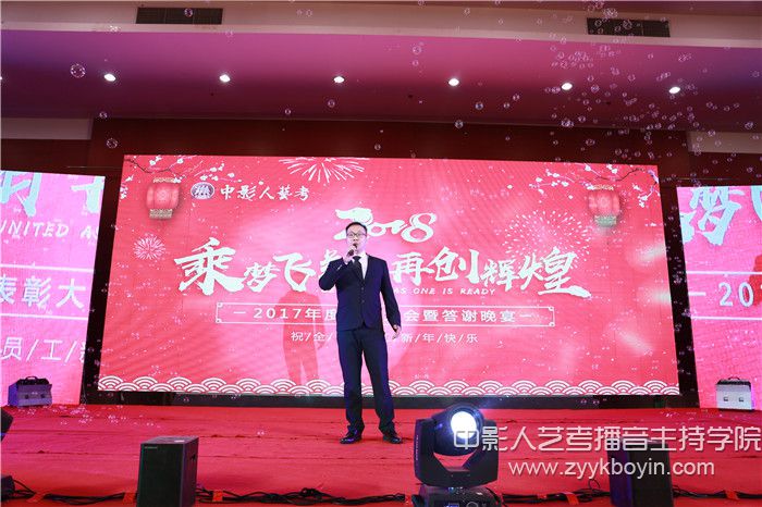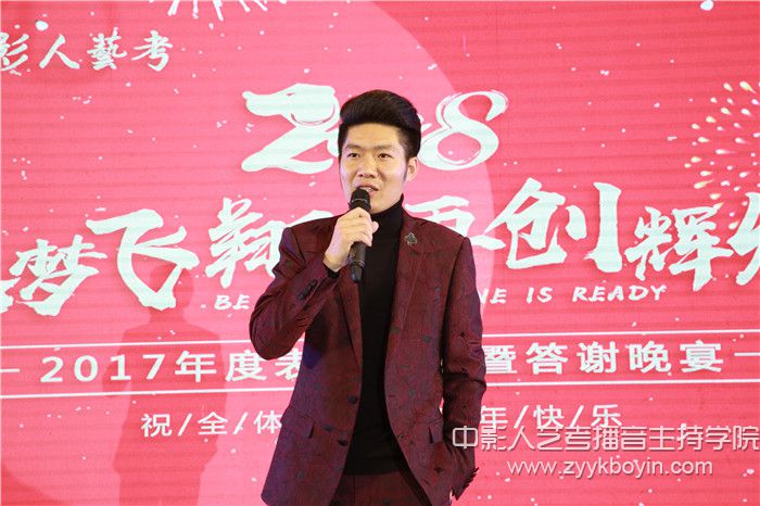VCR播放结束后,中影人艺考董事长杨立成先生上台致辞!杨总的发言回顾了过去一年中影人艺考傲人的成绩,也表达了新年对公司的美好期望,以及对每个员工的关切问候!